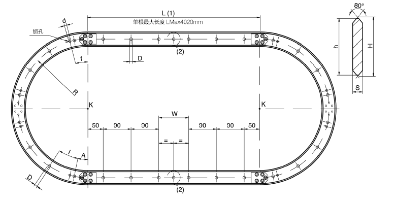 2、為彌補(bǔ)圓形導(dǎo)軌切割的損耗,直線導(dǎo)軌長(zhǎng)度比K值長(zhǎng)3.2mm(1.6mm×2)。