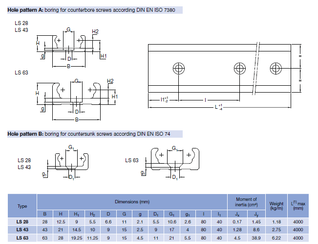 7、LS導(dǎo)軌截面尺寸有28、43、63規(guī)格。
