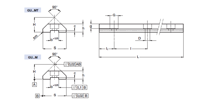 1、GU系列V導(dǎo)軌鋼制冷拉成型,表面淬火噴砂處理(后綴MT)。